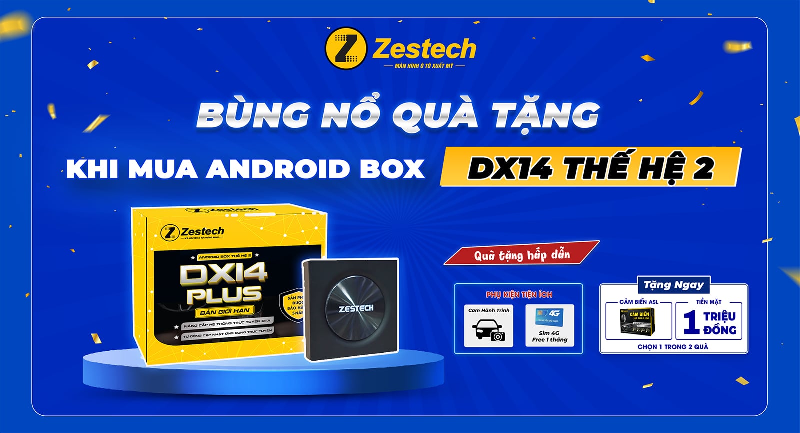 Khi mua sản phẩm Android Box ô tô giá rẻ Zestech DX14 Plus tại mytvbox.vn, bạn sẽ nhận được không chỉ sản phẩm chất lượng cao với những công nghệ mới nhất, mà còn được hưởng nhiều ưu đãi khuyến mãi hấp dẫn như Sim 4G miễn phí 1 năm. Bên cạnh đó, với chính sách bảo hành lên đến 5 năm, bạn có thể hoàn toàn yên tâm về chất lượng và độ bền của sản phẩm.