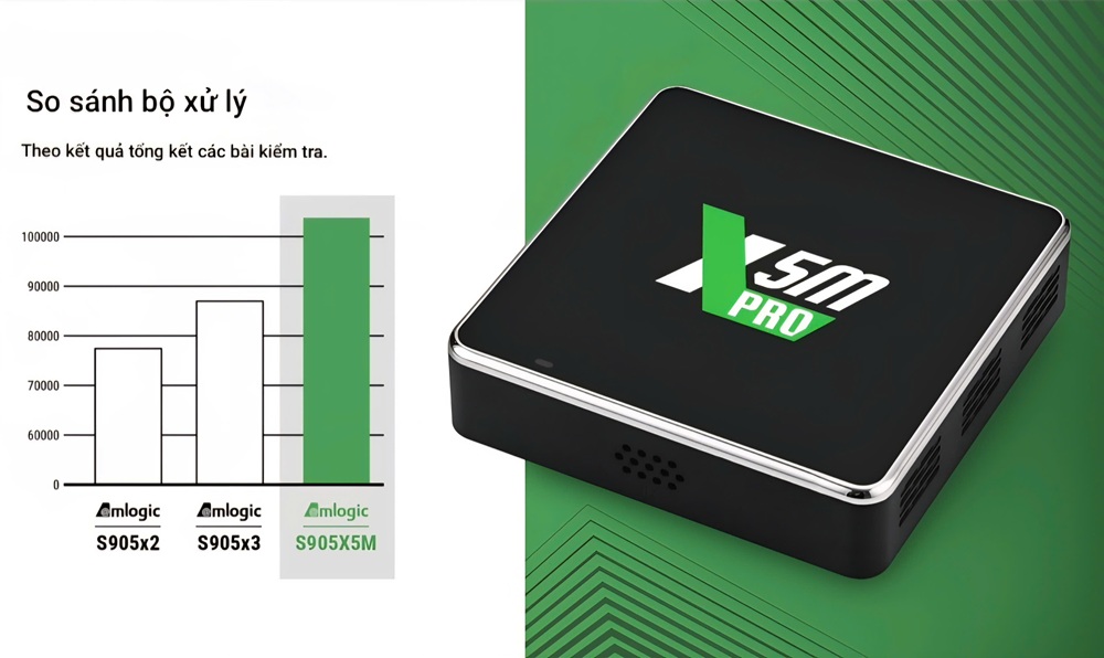 Chip Amlogic S905X5M (Quad Cortex-A55 @ 2.5GHz) – hiệu năng mạnh mẽ