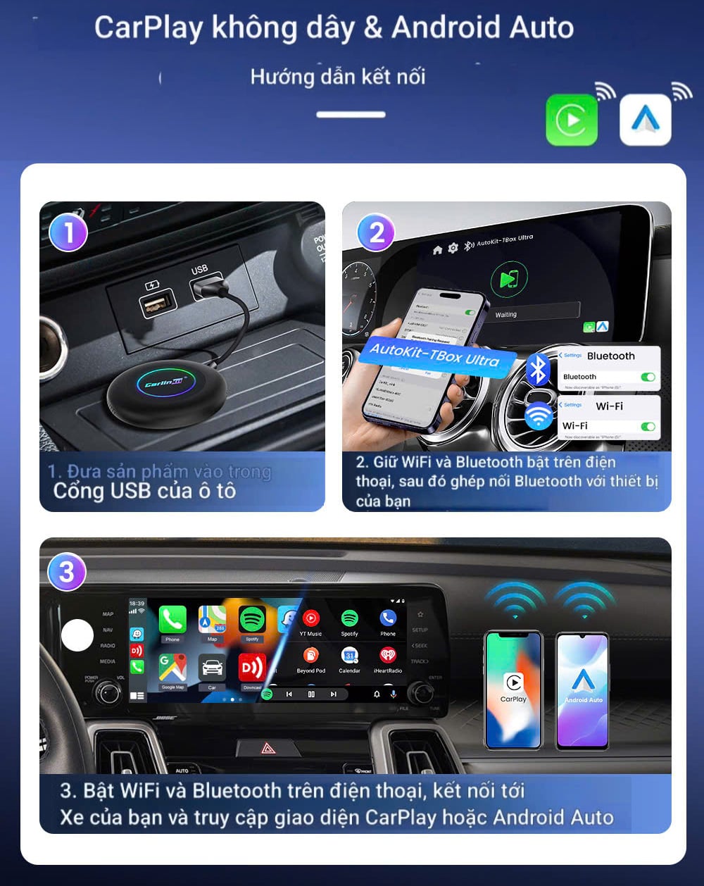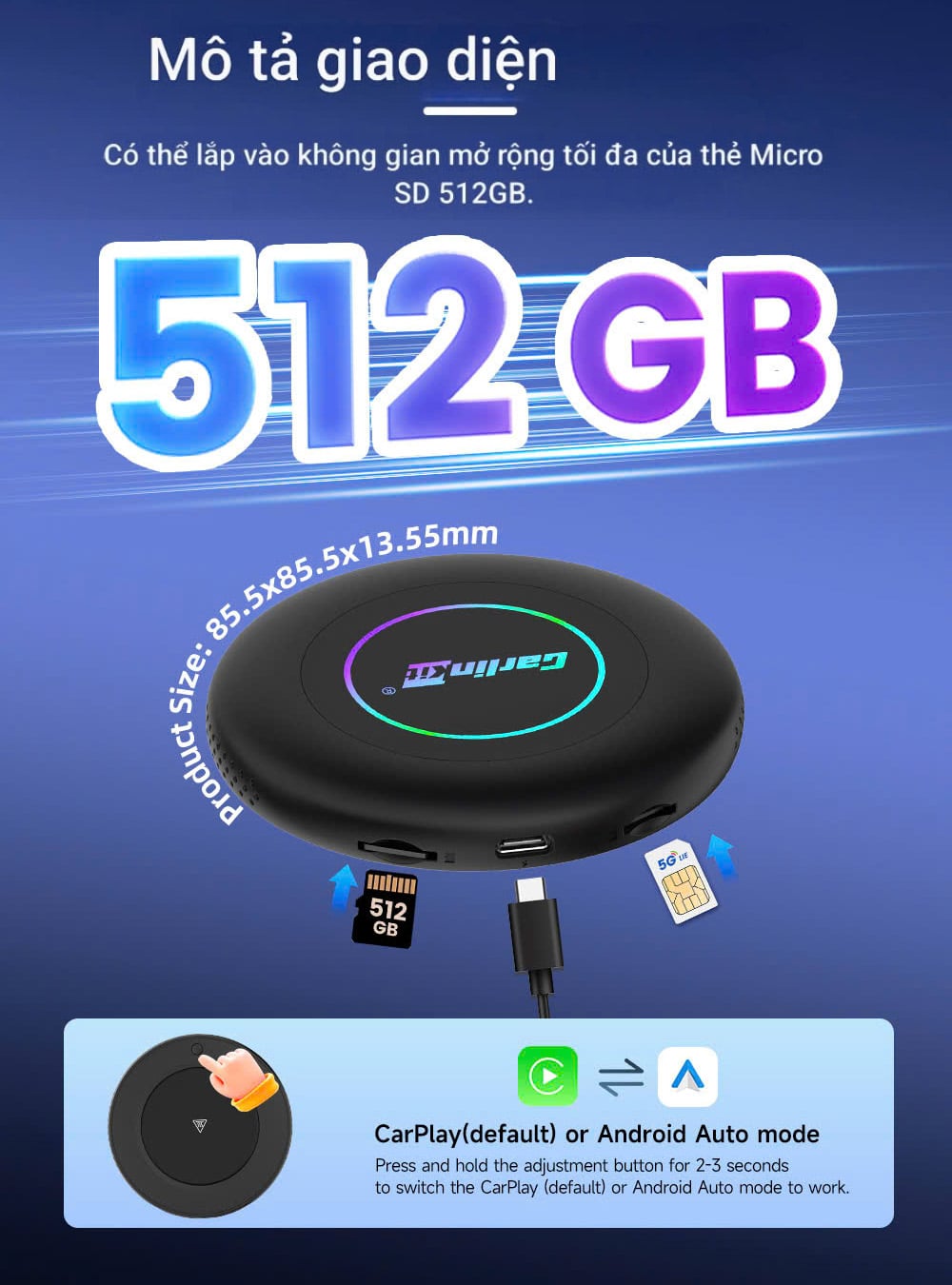 | Chế độ hoạt động | Android Box / CarPlay / Android Auto (chuyển đổi linh hoạt) |